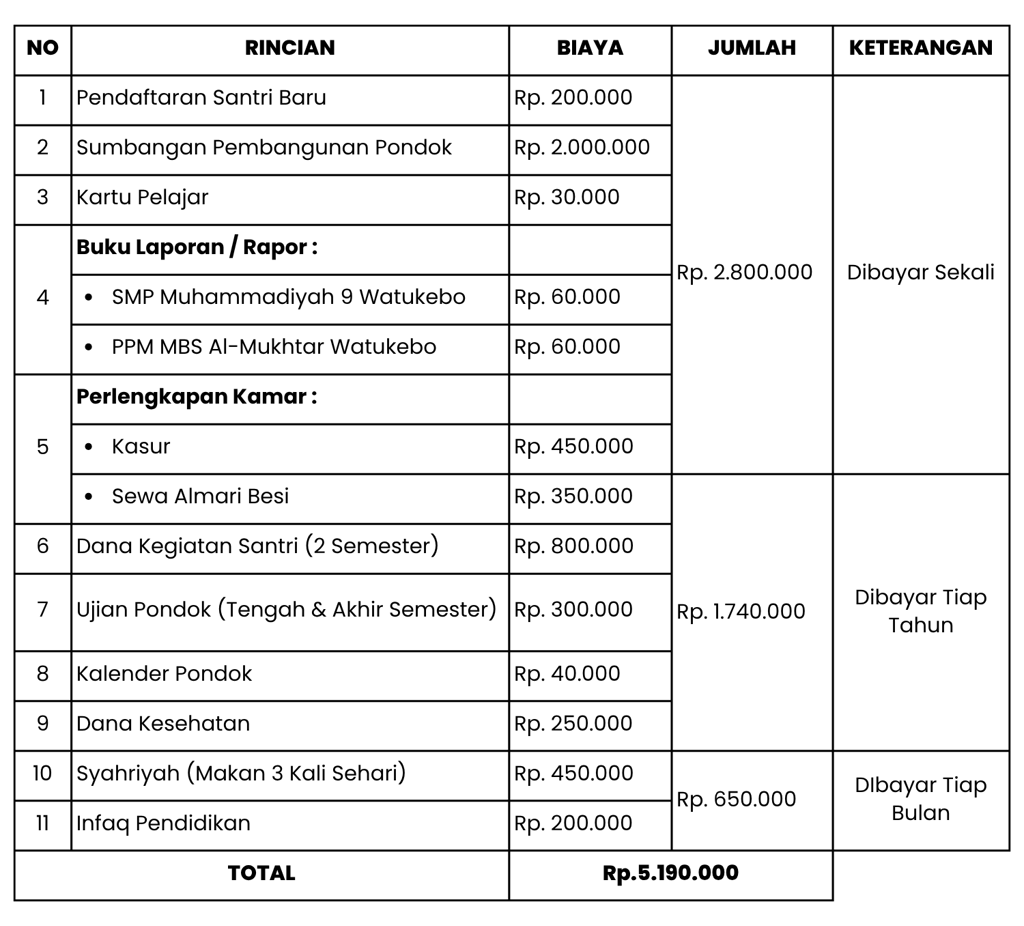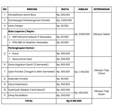 BIAYA PONDOK